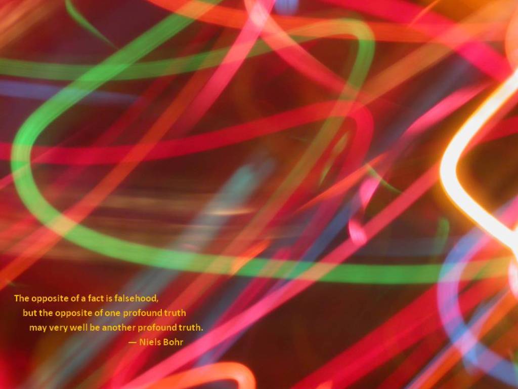 The opposite of a fact is falsehood, but the opposite of one profound truth may very well be another profound truth. – Niels Bohr